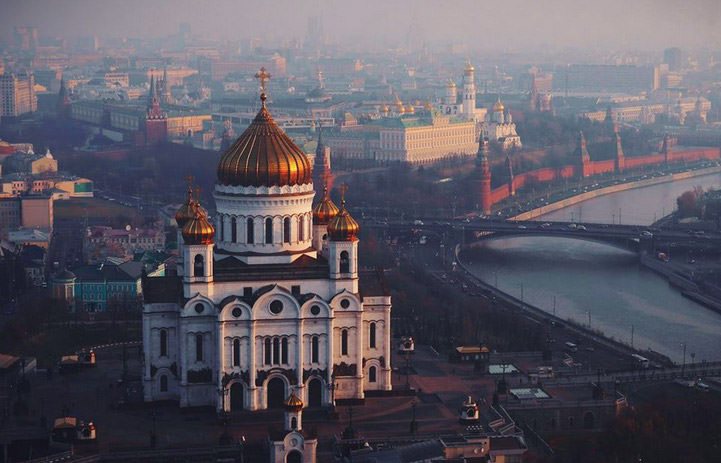 2. Saint Petersburg's Church Of The Saviour On Spilled Blood – This photo shows an aerial view of the church that Tsar Alexander II was assassinated. The drone gives you a view of the entire front of the church angled slightly down to see the grounds around the church as well.